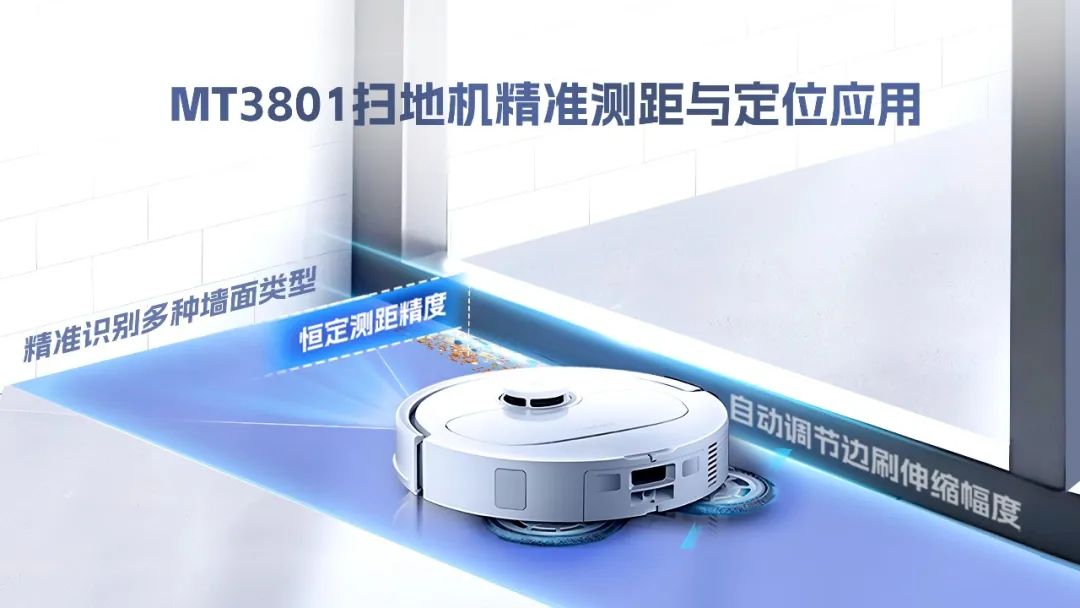 DTOF傳感器在沿墻模式下保持恒定測距精度,確保邊刷與墻面始終維持最佳間距,實現極限貼邊。同時,基于實時距離反饋,系統(tǒng)自動調節(jié)邊刷伸縮幅度,將墻角垃圾精準掃入主吸塵通道,還可精準識別多種墻面類型(如踢腳線、玻璃幕墻、凹凸磚墻等),并自動調整清潔策略。(點擊查看更多MT3801產品信息)