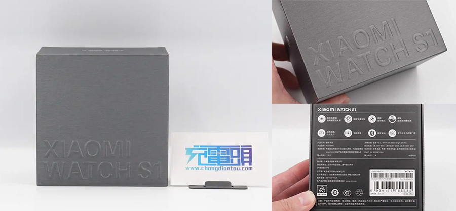 產(chǎn)品包裝盒趨于立方體,整體為灰色基調(diào),棱角分明,風(fēng)格簡(jiǎn)約。包裝盒頂部壓印產(chǎn)品名稱——XIAOMI WATCH S1。包裝盒天地蓋設(shè)計(jì),底部貼有產(chǎn)品銘牌,印有產(chǎn)品8大賣點(diǎn)、參數(shù)以及商家信息等,生產(chǎn)商為龍旗電子(惠州)有限公司,產(chǎn)品還通過(guò)了CCC認(rèn)證。