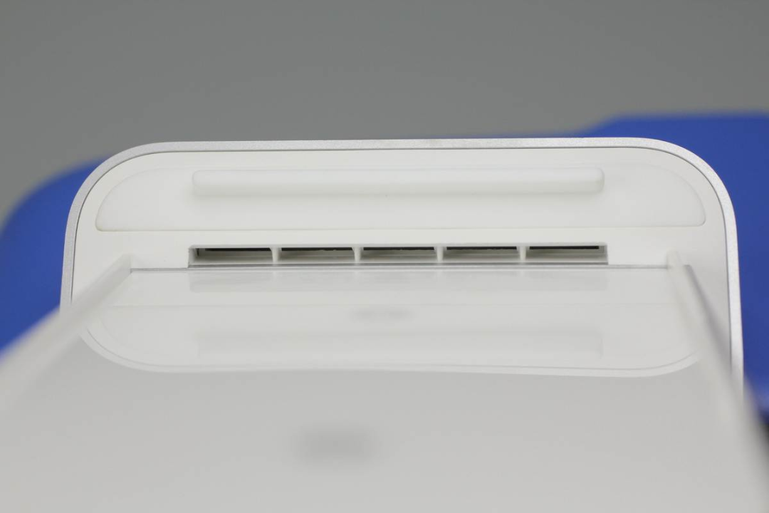 底座前端印有MEIZU品牌,并設(shè)有一顆LED充電指示燈。