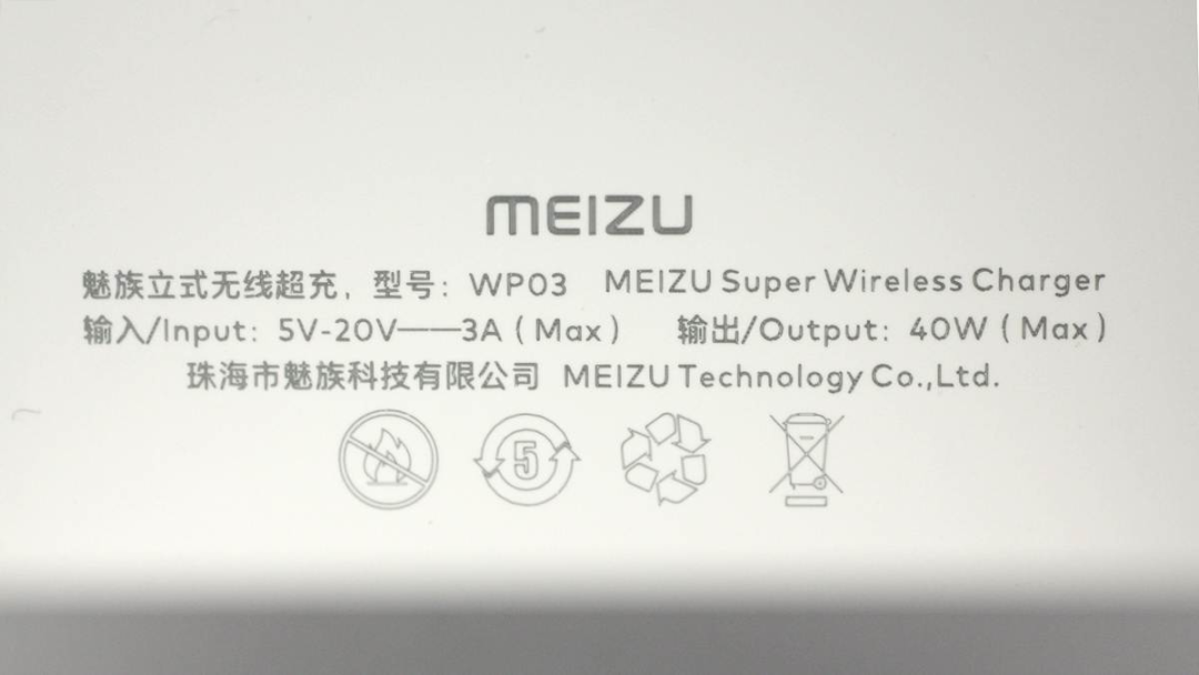 包裝盒為白色,設(shè)計也比較簡潔,正面印有MEIZU品牌、無線充外觀和名稱。