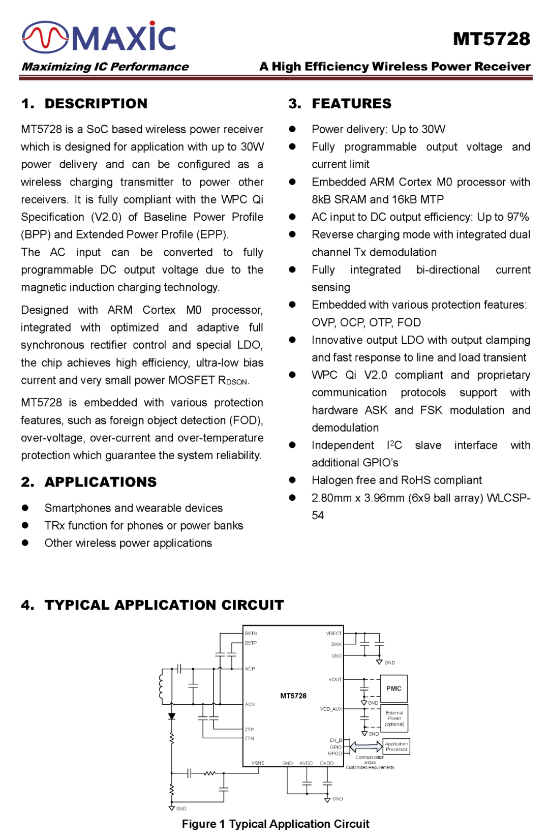 MT5728支持過壓、過流、過溫等多種保護功能,支持I2C接口和可配置的GPIO接口,采用WLCSP54封裝,可廣泛應(yīng)用于手機、充電寶、平板電腦等電子設(shè)備。