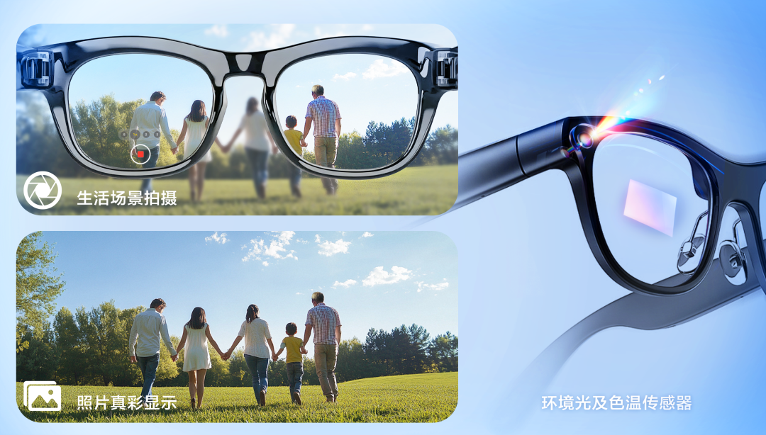 在 AI 眼鏡中,環(huán)境光感知是實現(xiàn)智能、無縫用戶體驗的關鍵,美芯晟環(huán)境光及色溫傳感器作為一個高度集成的 RGB 顏色和閃爍頻率檢測傳感器,主要扮演了“環(huán)境感知者”和“顯示調節(jié)者”雙重角色。它通過精確感知周圍環(huán)境光照條件,為 AI 眼鏡的自動顯示亮度調節(jié)、真彩顯示、防頻閃拍照以及情境感知 AI 交互提供了至關重要的數(shù)據(jù)基礎。